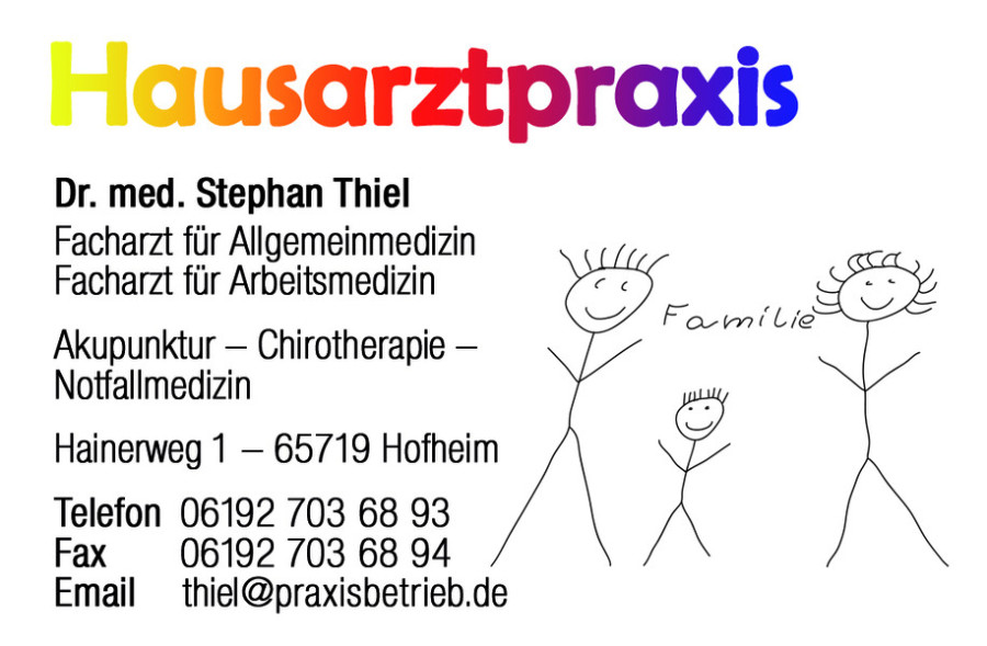 Vielen Dank für Ihr Interesse an unserer Praxishomepage, die sich in zwei Teile aufgliedert: Hausarztpraxis und Betriebsarztpraxis.